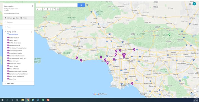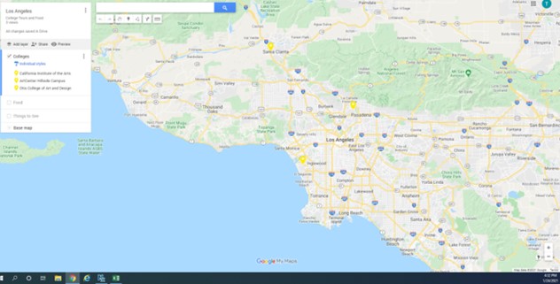 The first layer is the easiest one, it involves the location of the three schools that we need to tour on the trip. These range from right by LAX to Pasadena and out to Santa Clarita, so they cover a lot of territory. Which is a good thing in my book, as it provides plenty of options for the rest of the trip.