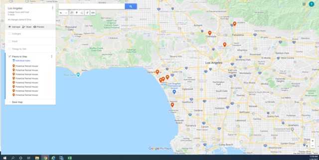 This step can definitely take some time, as you need to look at each property to find the ones that match what you are looking for and then compare their location to the “plan” map. However, it is also generally a lot of fun, as you get to see some amazing properties and you get to figure out what are the specific features that mean the most to you for the specific trip. In this case, I’m torn between some great places that are near the beach and then some good looking properties that are closer to some of the colleges and places we want to visit.