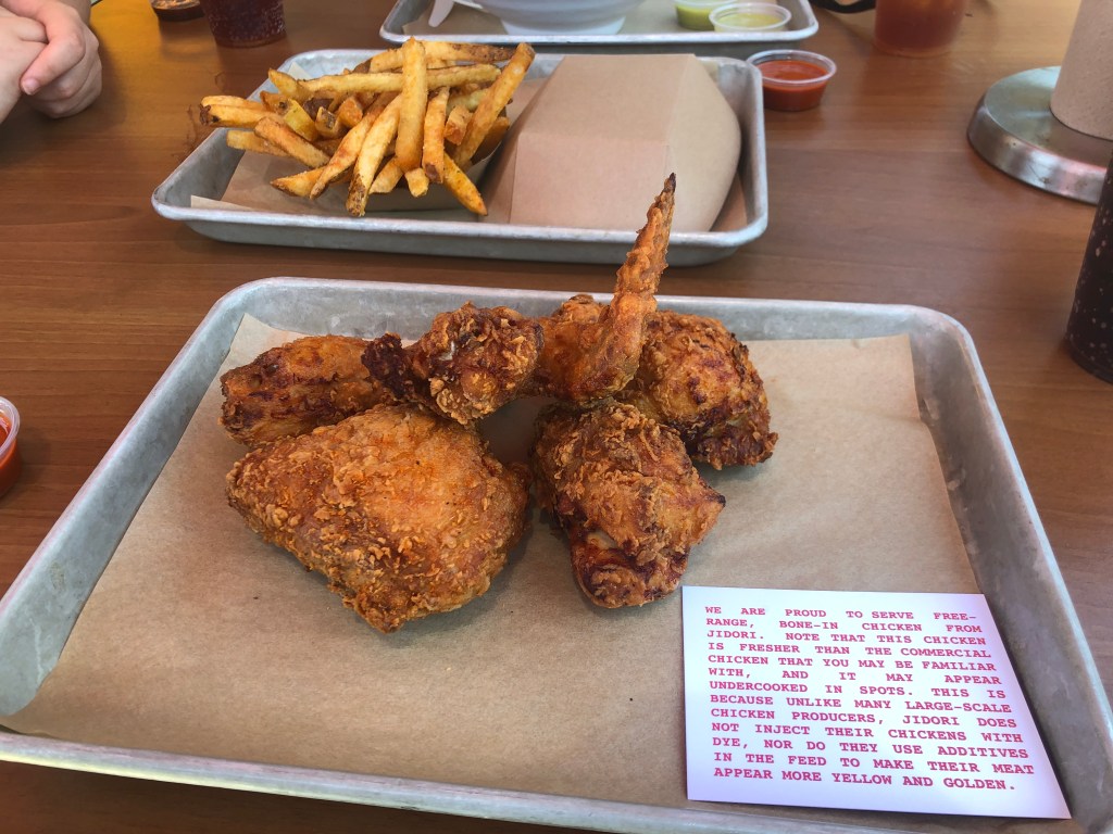 I am fortunate enough to live in the South so I have access to some pretty great fried chicken on a regular basis. Plus I have had trips to Nashville, where each day sampled a different place for Nashville Hot Chicken. (Hattie B’s is still at the top of my list). So when you come across a fried chicken place in Southern California you may not be expecting much. The Crack Shack deserves to display it’s overly large chicken statue in the middle of their patio in LIttle Italy. This is some of the best fried chicken I have ever had and will be on the lookout for their other locations in Denver and Las Vegas. With a great sauce bar to complement the chicken you just can’t wait to dive in. Just make sure you accompany your chicken with the Schmaltz Fries, and perhaps a 5 mile jog. The only disappointment was for my wife on this trip, as they have trimmed their menu a little bit due to Covid and they weren’t offering their Matzah Ball Pozole, the perfect mash up of Jewish and Mexican comfort foods. Dang, I’m drooling again.